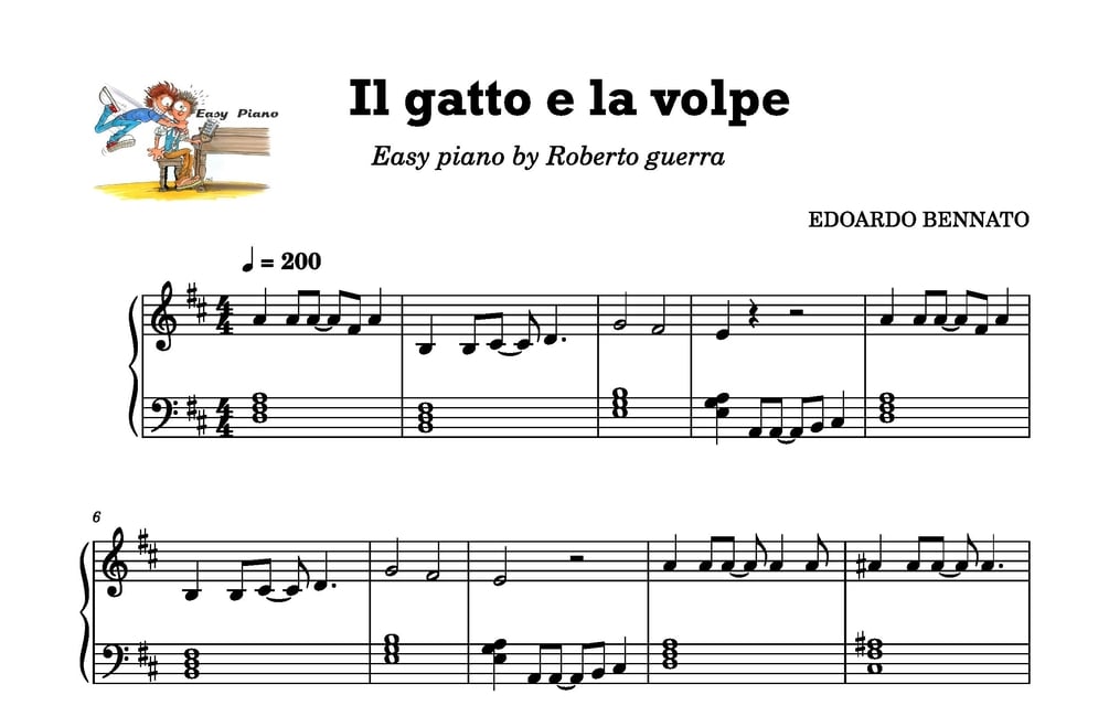 Il gatto e la volpeRoberto GuerraEdoardo Bennato - Il gatto e la volpeTrascrizione facile per pianoforte€22eurVersione StandardContiene il file pdf da stampare€2.502.50eurVersione GoldFile pdf + file mxl€3.503.50eurVersione DiamondContiene file pdf, MXL, audio mp3, MIDI e file originale di MuseScore!!32eurI want this!Add to wishlist New wishlistShareShare on XShare on Facebook Copy linkCopy product URL